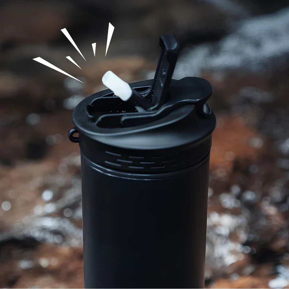 Vandfilterflaske og filtrering gjort enkelt. Nem all-in-one løsning. Renser 3,9 liter i minuttet og filtreret har en kapacitet på 1500 liter og 2500 cyklusser.
