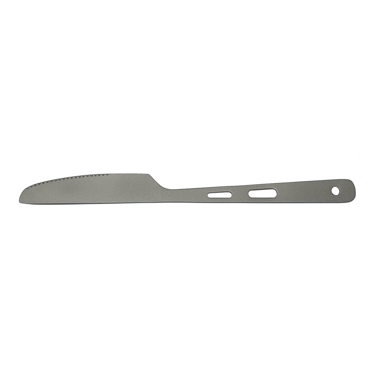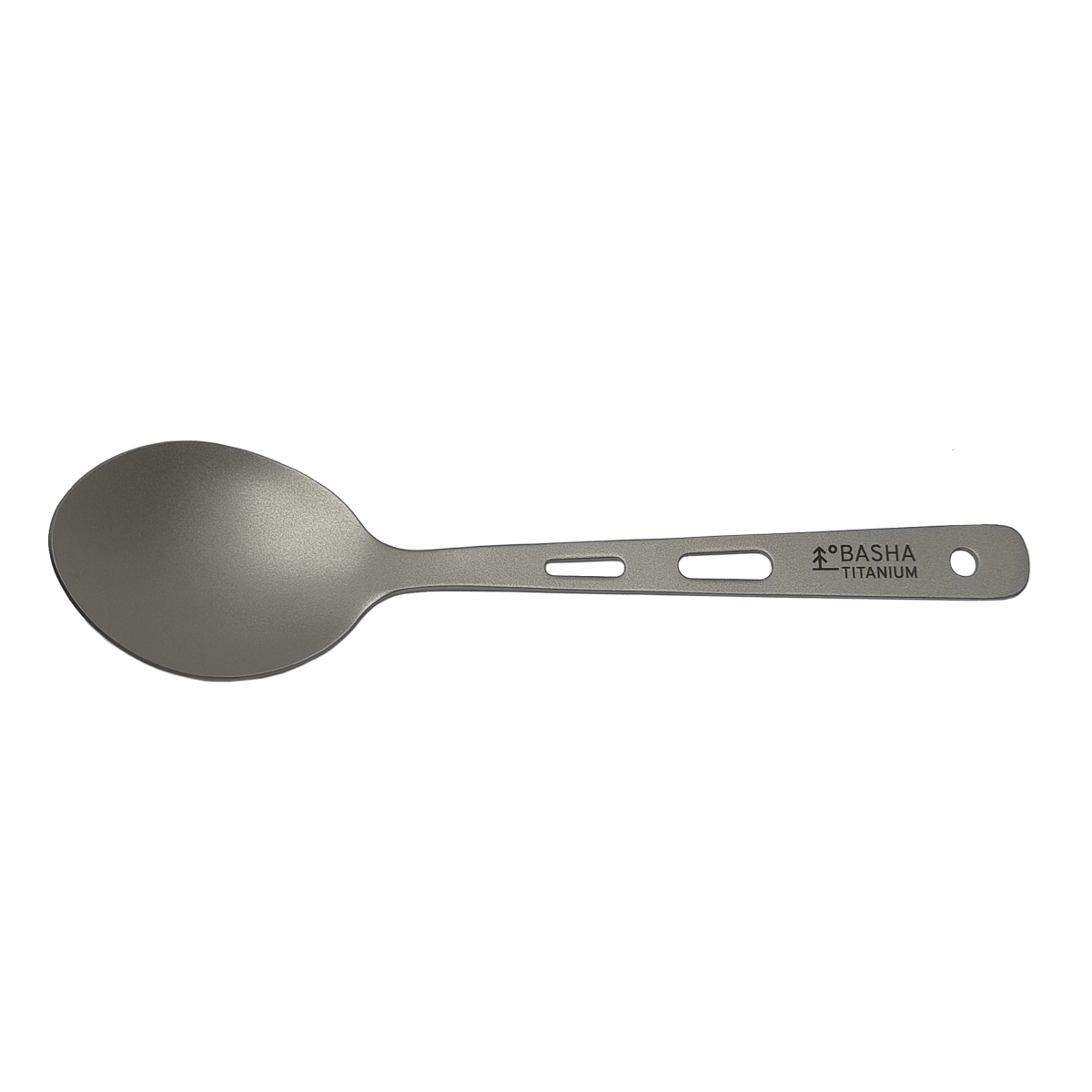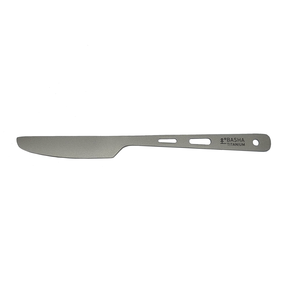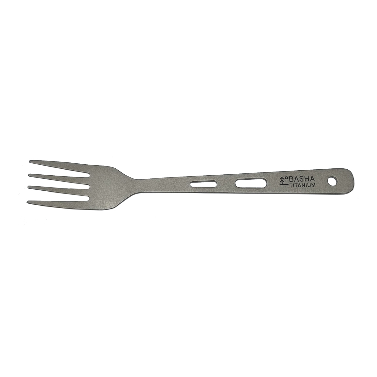 Basha HUNGR 3-delt bestiksæt i fuld størrelse er den ultimative praktiske løsning, der inkluderer en kniv, gaffel og ske, alle lavet af ekstremt slidstærkt og let titanium.