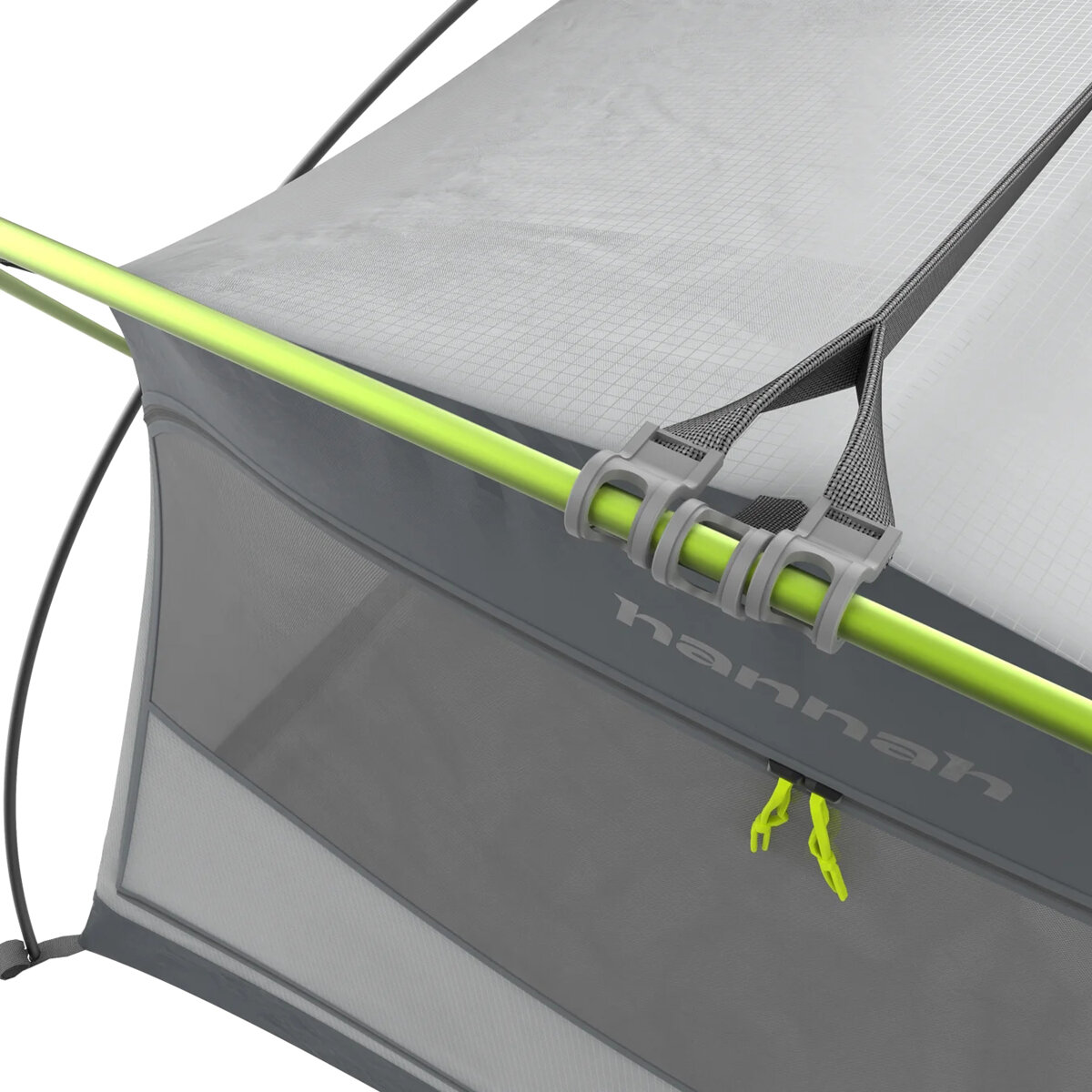 Hannah er ikke gået på kompromis med kvaliteten: Silikoniseret nylon ripstop top. Indertelt er ligeledes nylon ripstop og bunden er nylon. Der anvendes høj kvalitets YKK lynlåse, så alt kører let, sikkert og hurtigt – Hver gang. De gennemgående kvalitets ITW spænder sikrer, at teltet forbliver sikkert, stramt og opspændt.