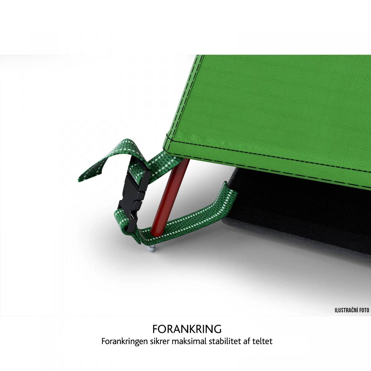 Derudover, så er lynlåsen dækket af et cover, som yderligere forhindrer vand i at trænge ind i teltet.