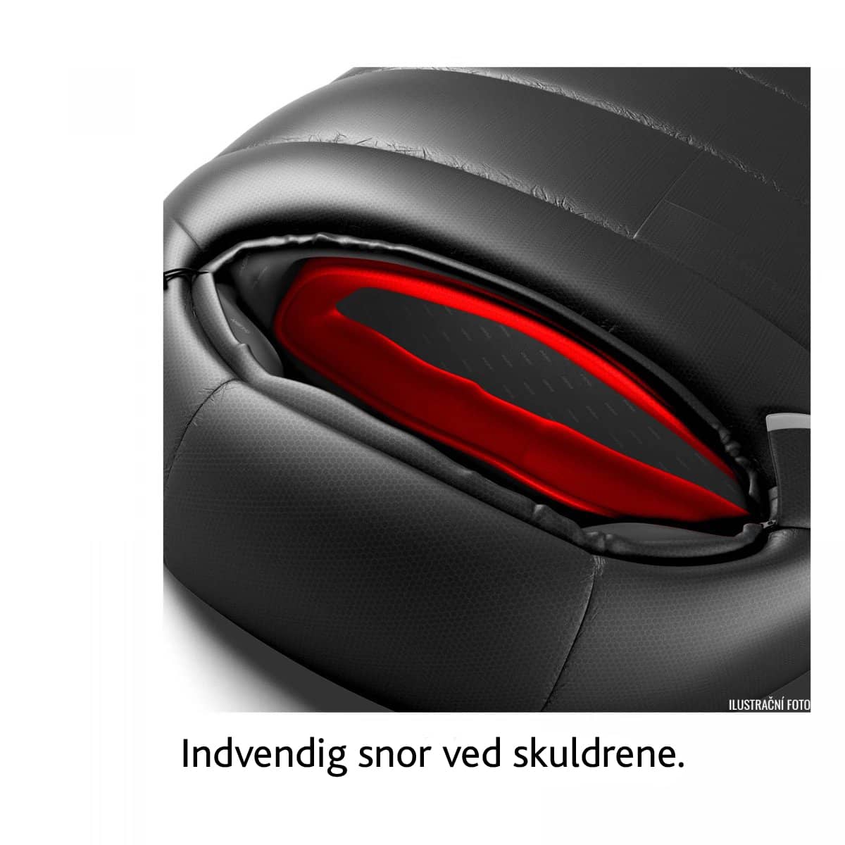 - Varme: Den justerbare hætte omkring hovedet og den termiske polstring langs hovedlynlåsen tilføjer ekstra varme og og beskytter mod varmetab