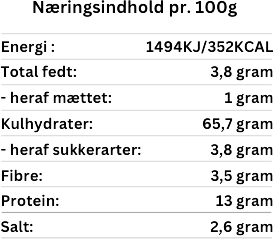 Kan indeholde spor af: andre kornprodukter, der indeholder GLUTEN, MANDEL, HASSELNØDDER, TUN, SENNEP, BLÆKSPRUTTE, ÆG.