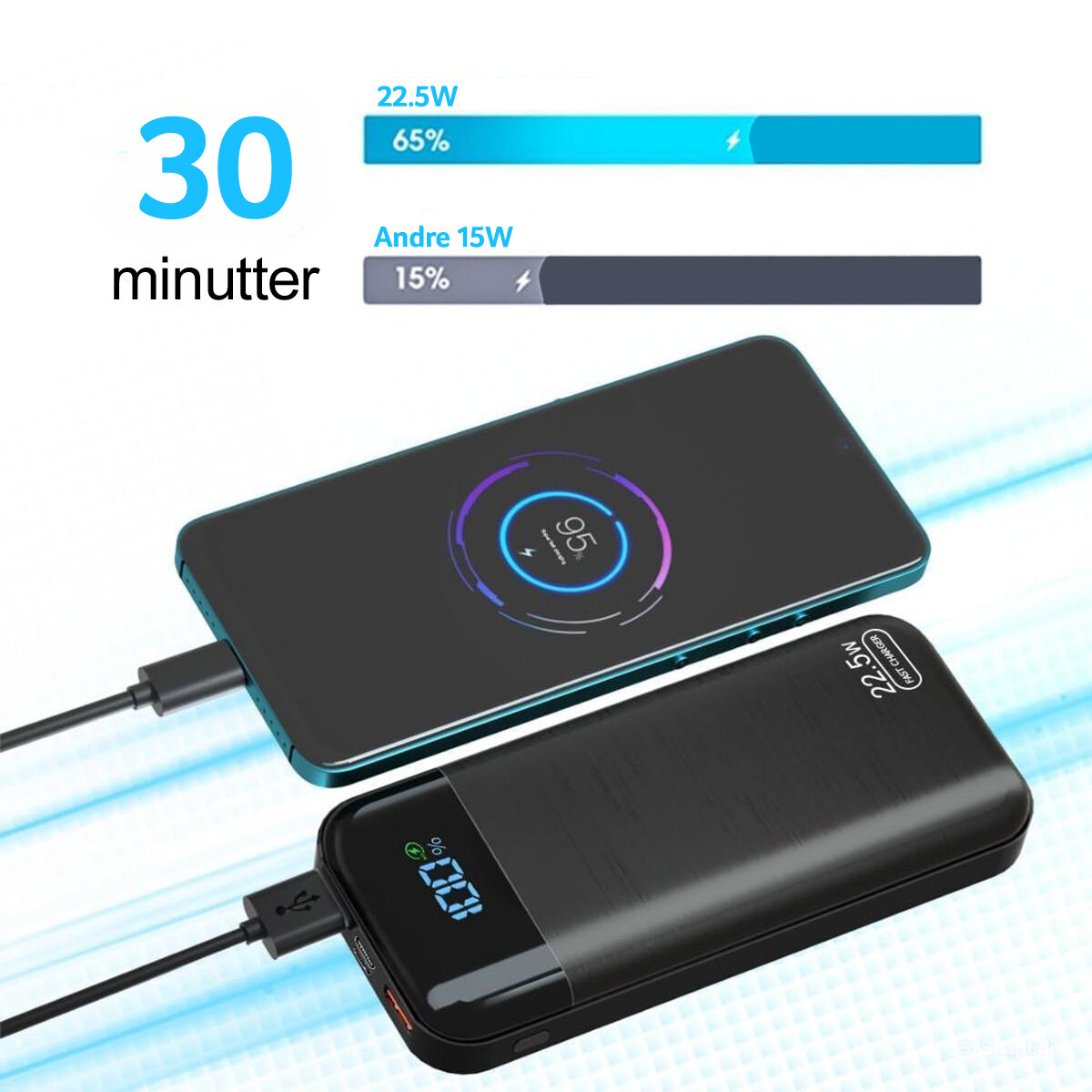 Kraftfuld powerbank med 22,5W PD20 hurtigopladning
