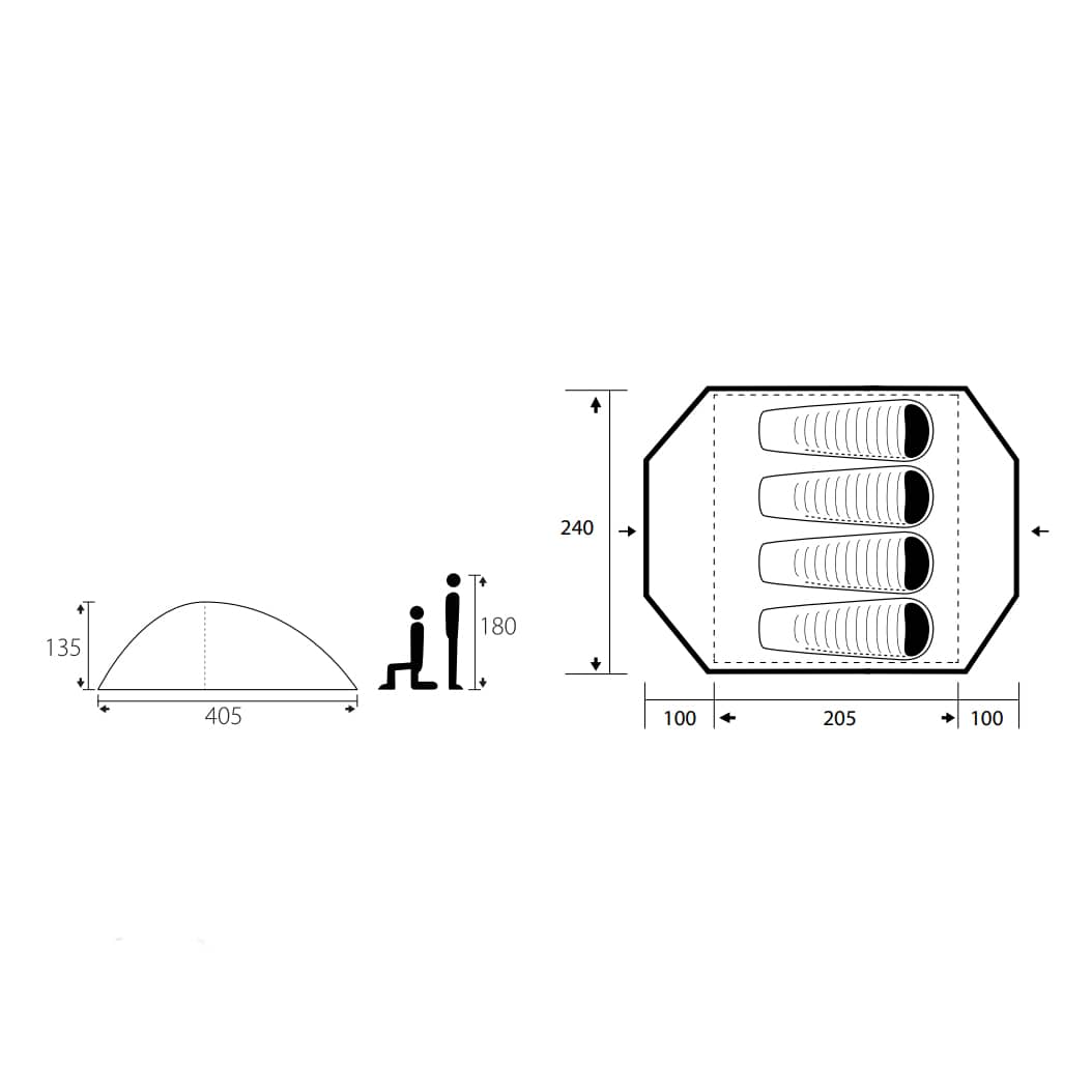 Du har to indgange i dette telt og to rummelige apsisser i begge ender af teltet til opbevaring af gear og til madlavning etc.